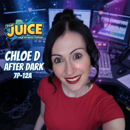 Nights come alive with Chloe D After Dark, 7 to midnight on The Juice—your hit music station. Start with the Juicy 7 at 7, picked by listeners, then hang out for big hits, celebrity tea, music news, fun facts, trending stories, laughs, shoutouts, and feel-good vibes all night long. From your first song to your last scroll of the night, Chloe D keeps the energy fun, fresh, and totally Juiced Up!